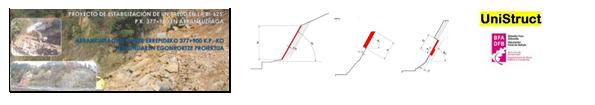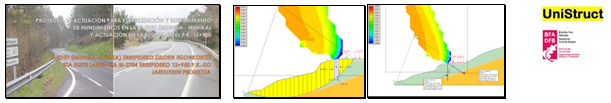 – “Actuaciones de emergencia en la BI-625, P.K. 377+800 (Pol. Bakiola- Arrankudiaga)”. Proyecto de estabilización de emergencia en la Carretera Foral BI-625 a causa de desprendimiento del talud. Dimensionamiento de la estabilización. Cliente: Diputación Foral de Bizkaia, Departamento de Obras Públicas y Transportes.
