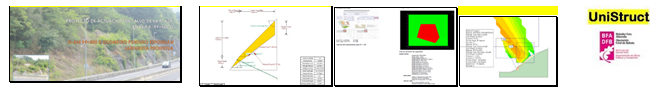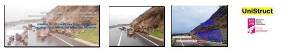 – Inundaciones. Dimensionamiento de sostenimientos en desprendimientos de plataformas de taludes debido a intensas lluvias. BI-633 38+850 (Trabakua Arqueta), BI-636 33+700 (Balmaseda Muro escollera inclinado), BI-737 P.K. 9+100 (Avanzada), BI-2224 p.k.49+700 (Bolibar),BI-3101 29+550 (Bakio), BI-3231 (Zugastieta), BI-3755 p.k.13+700 (Arboleda), BI-4403 (larruskain), N634-(Areitio), N-636 37+250 (Kanpazar), N-636 43+850 (elorrio).